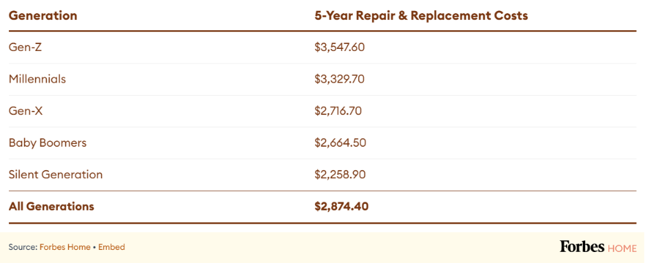 As 94% of homeowners had to repair or replace a major appliance in five years in the U.S., and that cost them anywhere from $2,258 to $3,547, according to a Forbes survey.