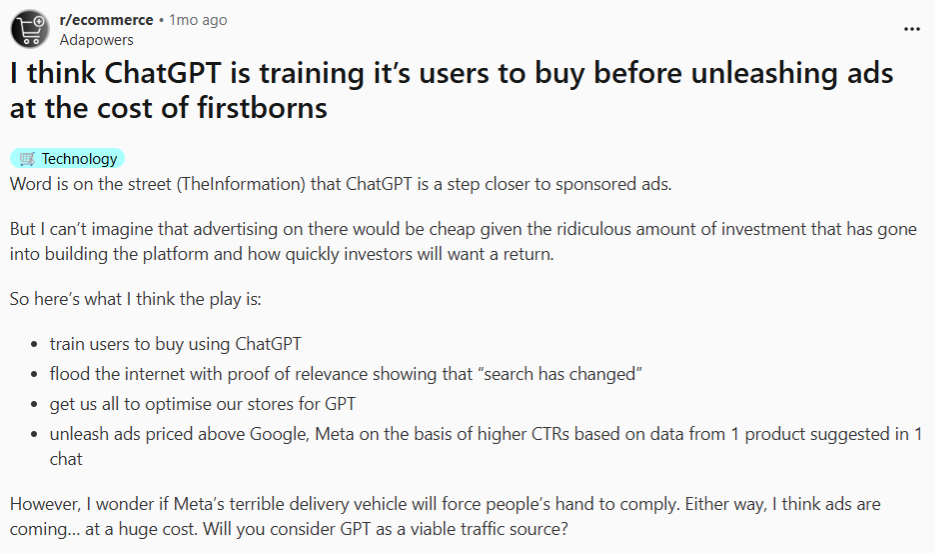 That uncertainty makes merchants cautious. And that makes ChatGPT far less attractive as an acquisition channel.