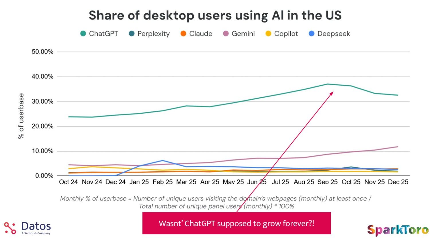 Beyond the headlines and PR- OpenAI is dealing with users dropping off in droves.