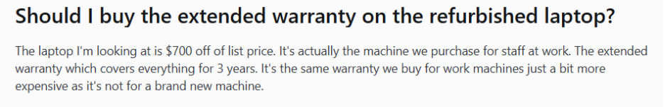 You’ve got to understand your own requirements when you’re considering whether an extended warranty makes sense or not.