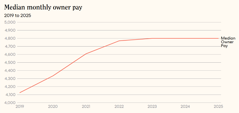 A 2025 payroll-study of mid-small businesses found a typical owner paid themselves about $4,800 a month,