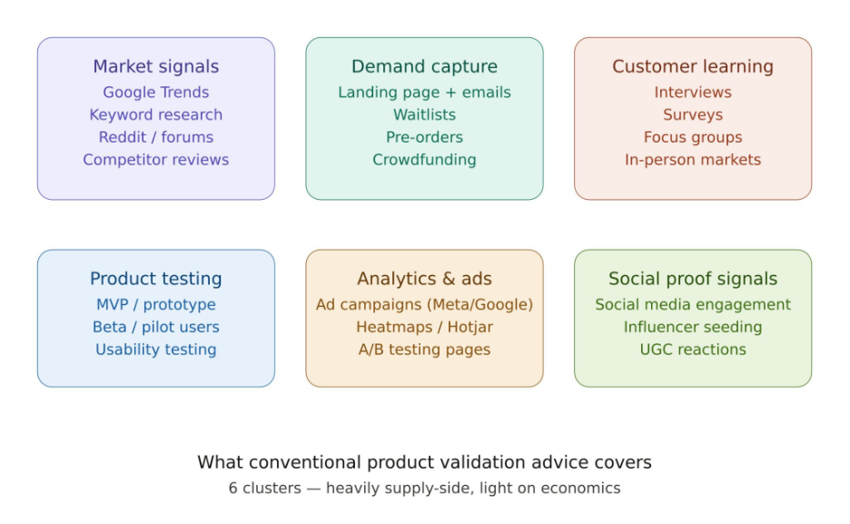 And most advice on product validation before launch can be grouped into the following clusters: