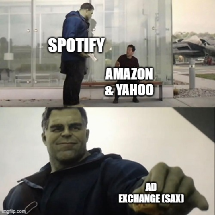 So Spotify launched its Ad Exchange (SAX) in April 2025, initially with The Trade Desk and Google's DV360. Amazon and Yahoo integrations expand that marketplace further, giving even more advertisers programmatic access to Spotify's inventory.