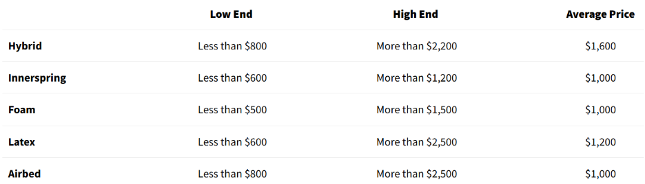 Now, mattresses have types, and each type has a unique cost attached to it - often varying by a lot.
